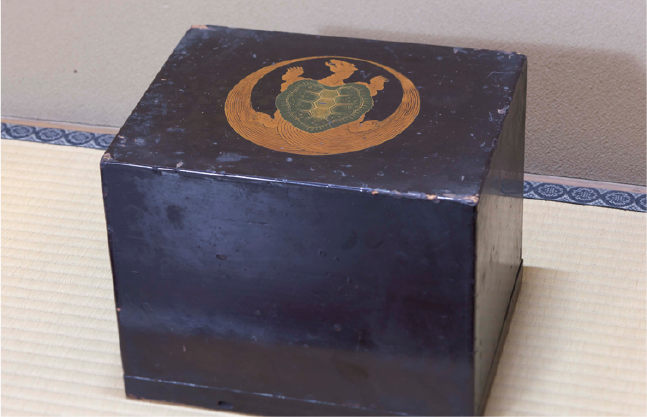 A lacquered box with a beautiful turtle pattern. Usage and age are unknown, but you can imagine that it was used for bringing Kashi or a gift.