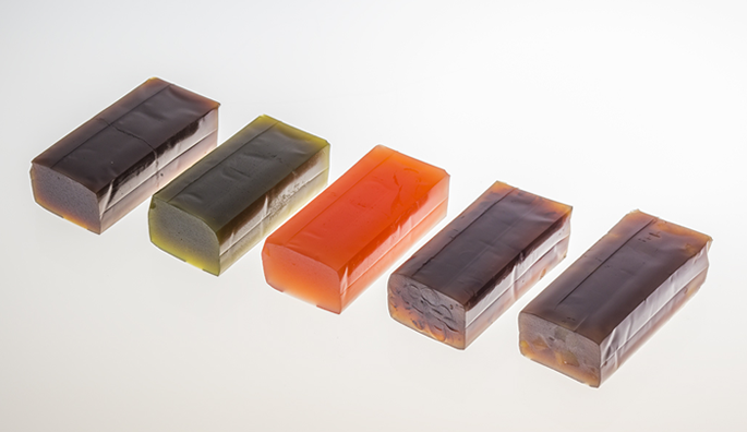 Three layered Sao-gashi (Japanese sweets in the form of long blocks).