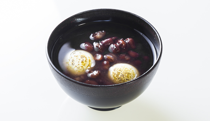 Zenzai (sweetened boiled adzuki beans with rice cakes) comes with a wish of prosperity for your family.
