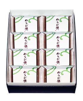 Warabi-mochi is made sweet and tasty by using Sanonto (soft yellow sugar). Enjoy by adding Kinako (sweet soy flour) or Kuromitsu (brown sugar syrup) at your preference..