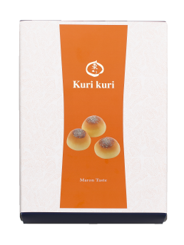 Cute rounded bite-sized baked treat made with Momoyama (dough made with white adzuki bean pastes and sugar). Chestnut paste is inside.